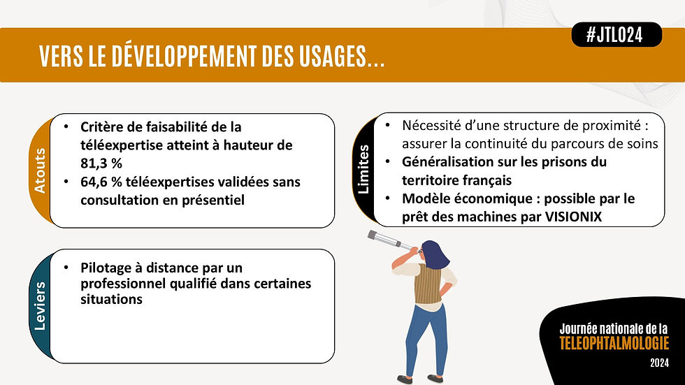 Le Dr Villain a conclu en exprimant sa vision pour l’avenir de la téléophtalmologie en milieu pénitentiaire. Selon lui, il est crucial de généraliser ces pratiques à d’autres établissements pénitentiaires, tout en respectant les bonnes pratiques médicales. Il a également insisté sur la nécessité d’établir un modèle économique durable, mentionnant que "la pérennisation de ces initiatives dépend de la possibilité de faire tourner les équipements entre les différents centres pénitentiaires", afin d’optimiser les ressources et d’assurer un accès continu aux soins.